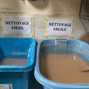 - De quoi nettoyer votre atelier : j’insiste, sur l’importance d’éviter de respirer la poussière d’argile sèche !