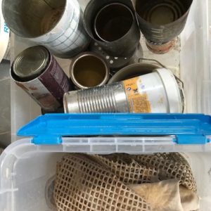 - A partir de maintenant, conservez tous les pots, les sceaux (avec couvercle), les boites avec couvercles, que vous pourrez croiser… Tous les contenants vous permettant de ranger, stocker, emmagasiner vos outils, et tout le bazar qu’à partir de maintenant vous chinerez (et oui, il y a toujours moyen de faire quelque chose de ce morceau de bois, ou alors de ce coquillage, du sable ramassé sur la plage, …)