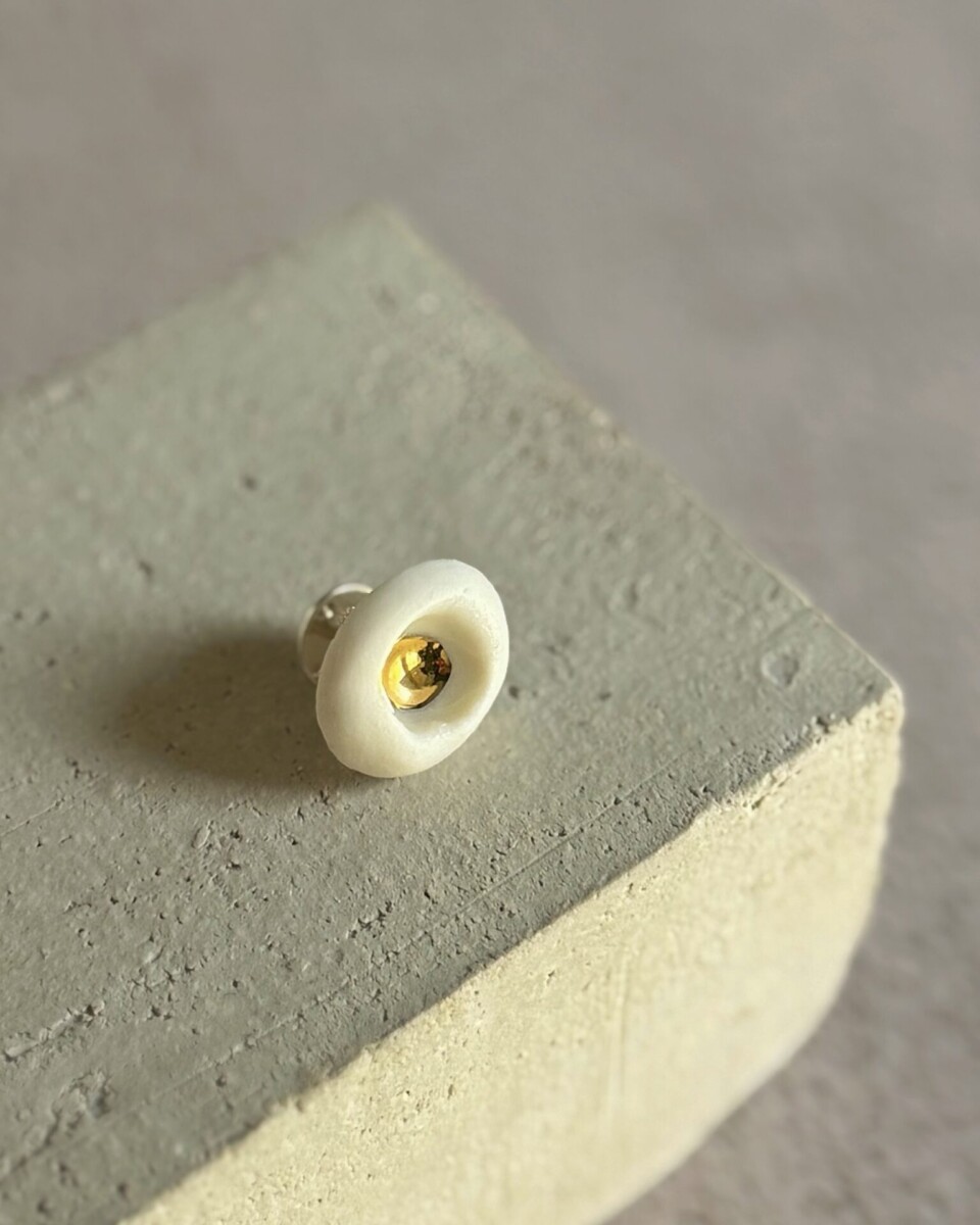 Ce pin’s partie d’une série de bijoux façonnés à la main en porcelaine dans mon atelier Ose la Terre à Braine-l’Alleud.