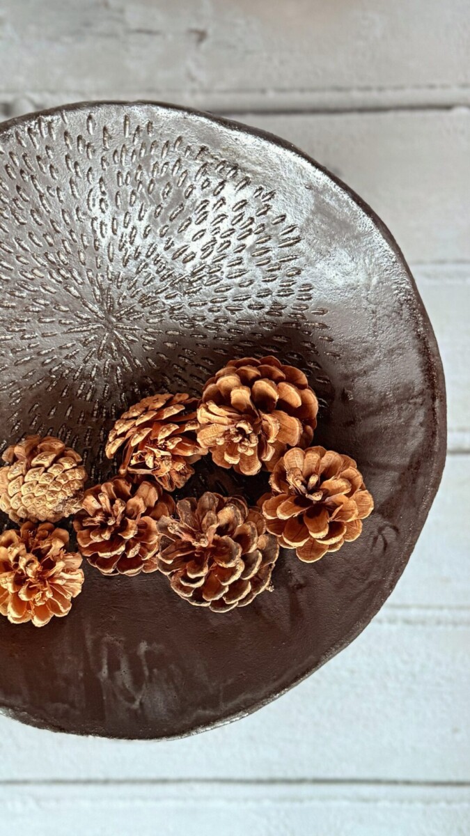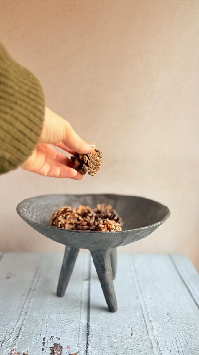 - Pieds : 3 pieds formés à la main