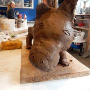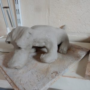 Une semaine de stage bien remplie. De beaux souvenirs grâce au jeu de la barbotine: à chaque fois, c’est une expérience unique! Lennox (le toutou), tout fraîchement arrivé à l’atelier, nous a servi de modèle pour appréhender le modelage des chiens!